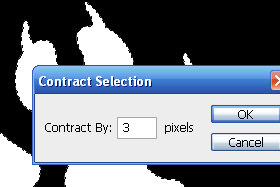 Kliknite zgoraj na Select, Modify in izebrite Contract... V novem oknu določite Contract by 3 pixels in potrdite na gumb OK. |