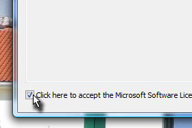 Potem pa zaženite namestitev in označite Click here to accept the Microsoft Software Licence Terms...