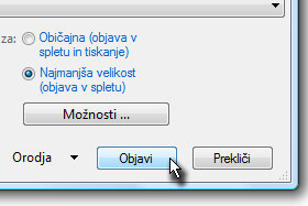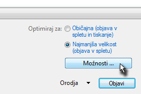 Optimiraj sem označil Najmanjša velikost (objava na spletu), ker bom datoteko objabil na splet.
