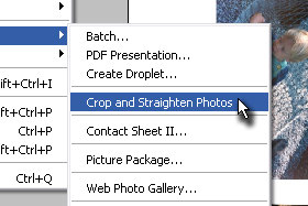 ![]() Kliknite zgoraj na File, Automate in izberite Crop and Straighten Photos. |