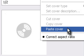 Potem pa v oknu na levi strani kliknite z desnim miškinim gumbom na polje, kjer se dodaja sliko albuma in izberite Paste cover. |