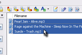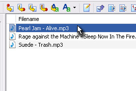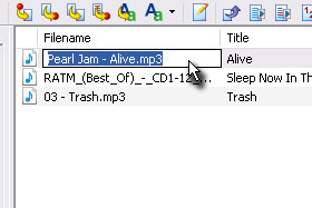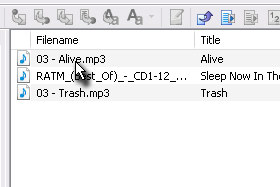 Prvo bomo datoteko fizični preimenovali. Označite poljubno skladbo in pod poljem Filename (glej sliko) kliknite dvakrat nanjo... |