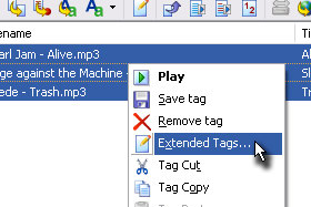 Kliknite z desnim miškinim gumbom na označene datoteke in izberite Extended Tags...