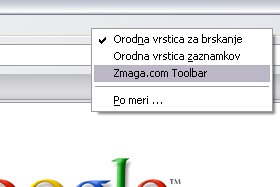 Z desnim klikom klknite na zgornjo vrstico (glej sliko) in obkljukajte Zmaga.com Toolbar. Pojavila se bo orodna vrstica. |