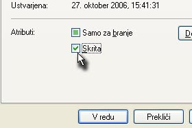 Pri atributih označite Skrita in potrdite na gumb V redu. |