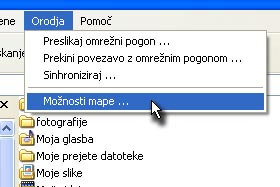 V Raziskovalcu kliknite na Orodja in izberite Možnosti mape ...