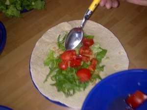 Ko bo zelenjava pripravljena, si nato pripravite še jogurtni preliv, sir in še tortilje. |