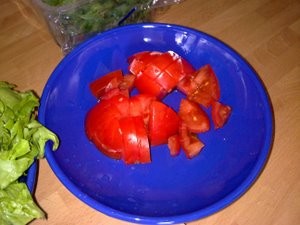 In nato še nekaj koščkov prej pripravljenega paradižnika. |