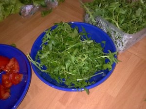 Potem dodajte še nekaj solate in rukole. |