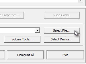 Da lahko dostopamo do šifriranih podatkov, v glavnem oknu programa kliknemo na gumb Select File. |