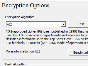 V naslednjem oknu imamo možnost izbire šifrirnih algoritmov.