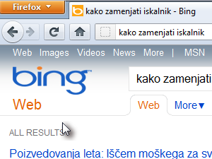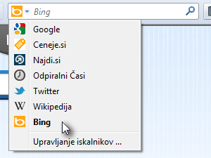 Najlažje to storimo, če ga zamenjamo z enim izmed obstoječih iskalnikov, ki se nahajajo zgoraj desno v padajočem meniju. |