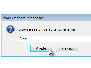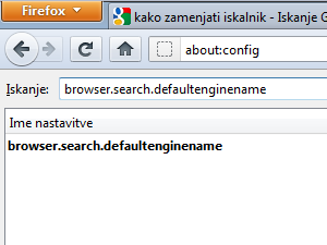 V polje za iskanje vpišemo browser.search.defaultenginename, da najdemo zapis, ki določa privzeti iskalni mehanizem.