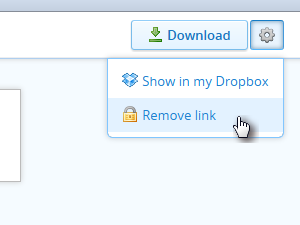 ![]() V kolikor pa kasneje datoteke več ne želite deliti z ostalimi, pa na isti strani kliknite gumb Download > Remove link in dostop do datoteke bo zopet onemogočen. |