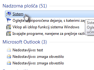 ![]() Med najdenimi rezultati kliknemo Sistem. |