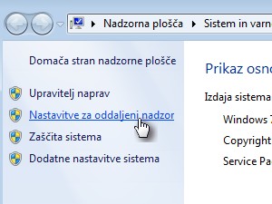 ![]() Najprej moram na računalniku, na katerega se bomo povezovali, dovoliti možnost dostopa preko Oddaljenega namizja.