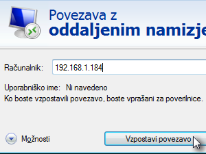 ![]() Vpišemo IP naslov računalnika, na katerega se želimo povezati. |