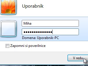 ![]() Vpišemo še uporabniško ime in geslo računa na gostujočem računalniku. |