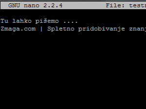 Ko smo končali z urejanjem datoteke jo shranimo s kombinacijo tipk CTRL + X.