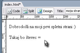 Vaš kuzor se še vedno nahaja na koncu teksta "Tukaj bo števec = ". Pritisnite tipki CTRL + V, da boste prej kopirano HTML kodo prilepili. |