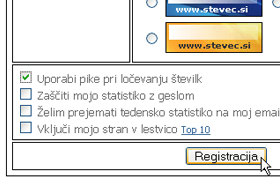 Prikaže se stran, kjer morate vpisati nekaj podatkov o sebi in spletni strani, kjer se bo nahajal števec.