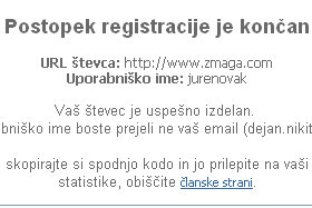 Podatke boste prejeli tudi na vaš e-poštni naslov, ki ga tudi shranite. Vaše podatke in obliko števca lahko kasneje spreminjate tudi na spletnem naslovu www.stevec.si. |