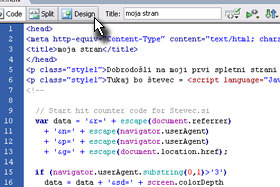 Vnešene HTML kode se ne vidi, ker jo Dreamweaver zaradi lažjega pregleda ne prikaže. |