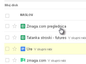 Najprej odpremo neko poljubno preglednico na Google Drive, za katero želimo spremljati spremembe.