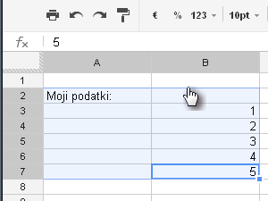 ![]() Odpre se nam običajno okno za urejanje preglednice. |