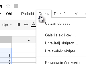 ![]() Zgoraj v meniju izberemo možnost Orodja. |