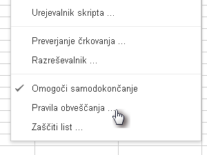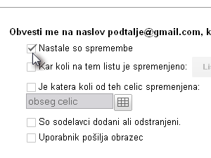 ![]() V novem pogovornem oknu obkljukamo Nastale so spremembe, s čimer nastavimo, da bomo dobili obvestilo ob kakršnih koli spremembah v preglednici. |