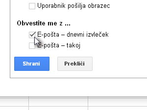 ![]() Sedaj obkljukajte še E-pošta - dnevni izvleček. |