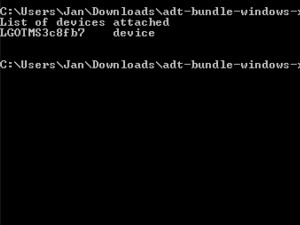 ![]() Odprite ukazno okno in napišite adb devices. Ukaz bi vam morala pokazati vaš povezan telefon (glej sliko). Napišite adb shell, sicer vam v naslednjem ukaz v naslednjem koraku ne bo deloval.