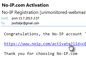 V mojem primeru je moj računalnik sedaj dosegljiv preko naslova podtalje.no-ip.biz. |