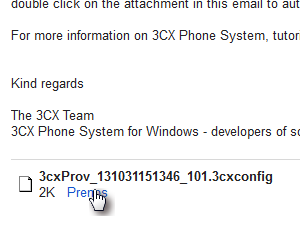 Kliknite na prijeto sporočilo v vašem nabiralniku. Ter si prenesite 3cxconfig priponko.