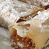 Ponovite postopek, kjer vse skupaj pokrijte in potlačite z novim vlečenim testom ter ga ponovno premažite z tekočim maslom. Dodajte nato polovico jabolčnega nadeva in ga razporedite. |
