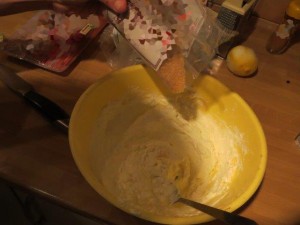 Dodajte še dve žlici sladkorja ter vse skupaj premešajte. Tretji nadev je pripravljen. Postavite posodo na stran. |