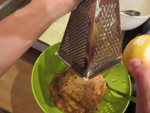 V posodo z naribanimi jabolki dodajte dve žlici sladkorja in nato v njo naribajte celo limonino lupino. Dodajte še 4 ščepce cimeta in vse skupaj premešajte. |