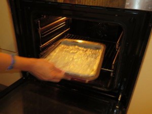 Nastavite pečico na 200 stopinj Celzija in v njo postavite pripravljeno prekmursko gibanico. |
