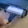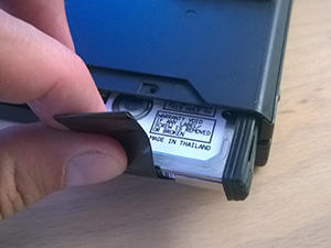 ![]() In nato disk odvil iz kovinskega ohišja. To ohišje je ustvarjeno zato, da se disk lažje vstavi. Nekje teh ohišij sploh ni, torej je menjava še lažja. |