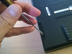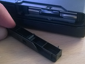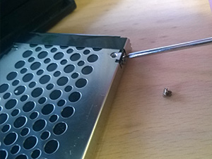 ![]() Najprej sem odvil vijak, ki drži plastičan vratca, za katerimi se nahaja trdi disk. |