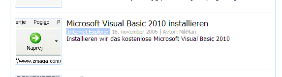 Naslov starejše lekcije se prepleta z nemško lekcijo za namestitev VB:
