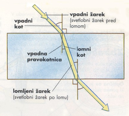 Tule pa prilagam še sliko, ki kaže lom svetlobe, brez odbijanja.