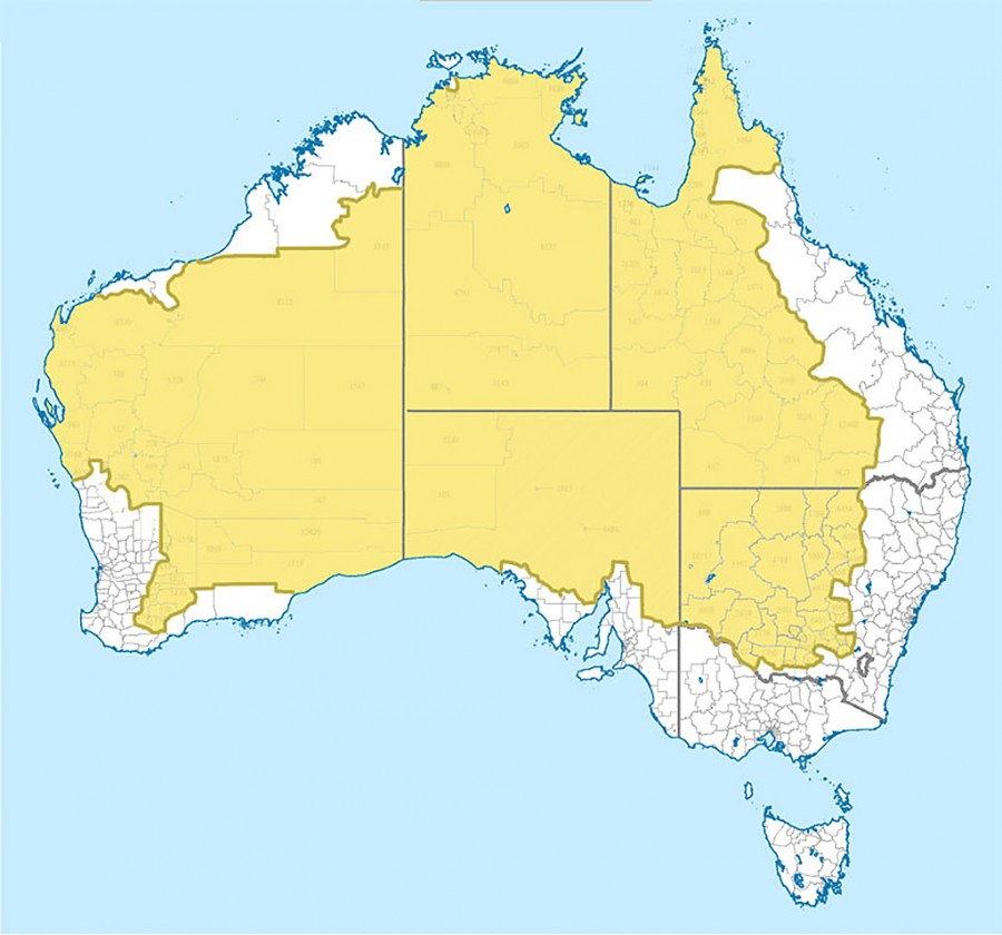 Zemljevid Avstralije, kjer ljudje skorajda ne živijo