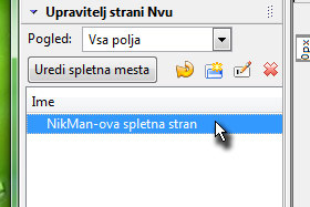 V oknu Upravljitelj strani Nvu boste opazili ime vaše nove spletne strani.