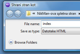 V pogovornem oknu ponovno (oziroma pusite) vpišite ime index.html in potrdite na gumb Shrani.