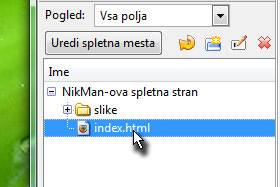 Seveda se morate nahajati v mapi, ki je ustvarjena za datoteke, ki so namenjene spletni strani (v mojem primeru NikMan-ova spletna stran). Kliknite tukaj za ogled naslednje lekcije. |