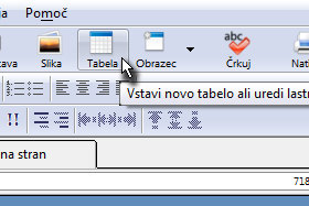 Kliknite na ikono Tabela. |