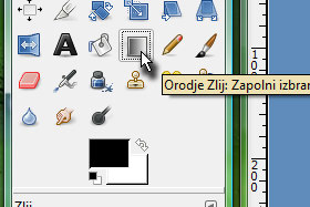 Izberite orodje Zlij in pritisnite tipko X, da bo črna barva na vrhu (glej sliko).