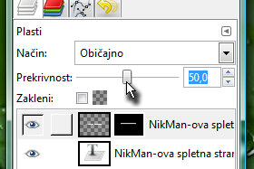 Sedaj pa v oknu s Plastmi določite Prekrivnost na 50,0 (glej sliko).